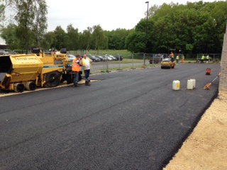 Construction of tarmac road surfacing to new housing estate in Esh Winning, Durham.
