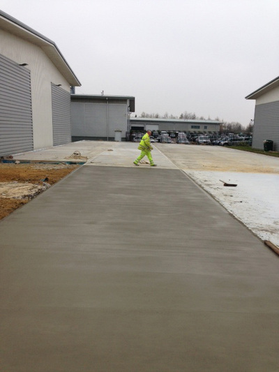 Work underway, constructing the new road surfacing for this large commercial factory in Newcastle for Greggs.