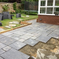 Domestic Stone Flagged Patio to the rear of this residential property in the North East of England.